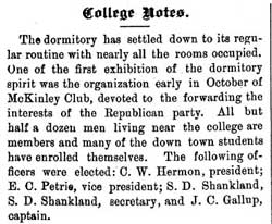 The snippet (right) taken from the Adelbert College student newspaper The Adelbert (left), reveals the sentiments of the majority of the undergraduate men students at WRU. William McKinley was the governor of Ohio at the time.