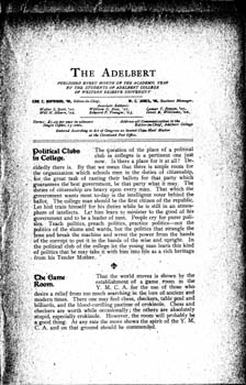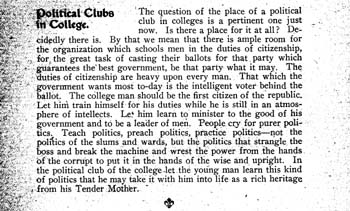 This editorial (right) which appeared in the student publication, The Adelbert (left), argued that there was a place for political clubs on campus.