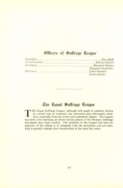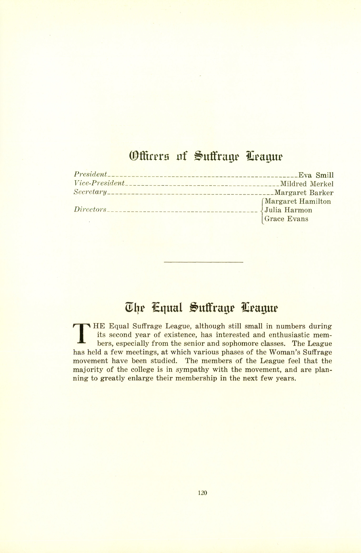 The Equal Suffrage League at the College for Women was in its second year of existence.