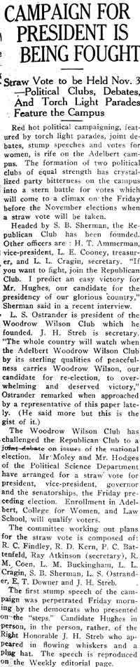 The Republican Club and Woodrow Wilson Club were active on the WRU campus with speeches, a debate, and participation in a straw vote.