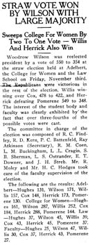 - Article about Woodrow Wilson being re-elected president in a straw vote at WRU from WRU student newspaper
