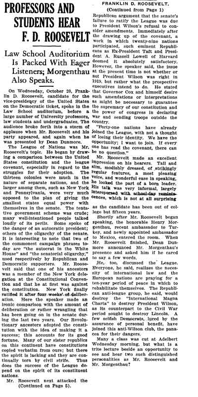 Democratic vice presidential candidate Franklin D. Roosevelt visited the WRU campus.