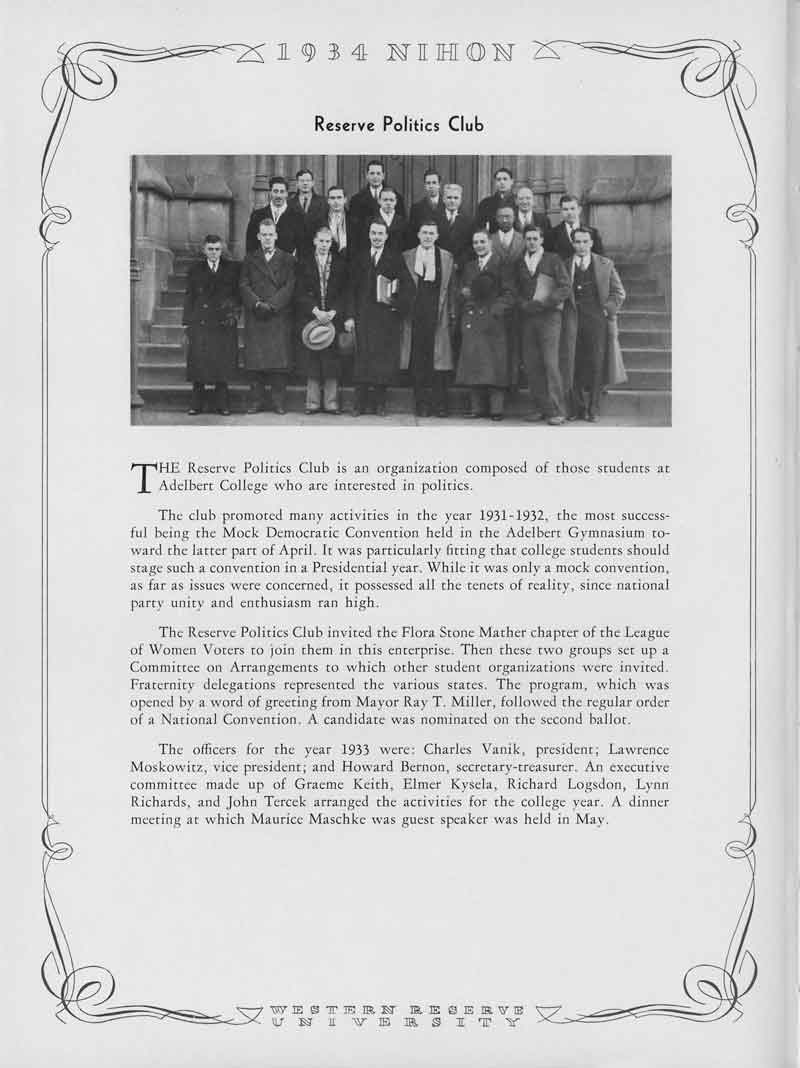 The Reserve Politics Club, with future Congressman Charles Vanik as president, co-sponsored the Mock Democratic Convention.