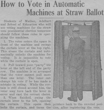 The article below explained how to use the automatic voting machines for the straw ballot at WRU.