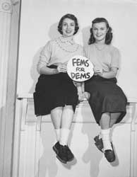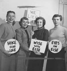 Women students show their support for the presidential candidates: Dwight D. Eisenhower and Adlai Stevenson.