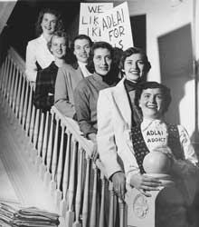 In an informal vote conducted by the Reserve Tribune, students were polled at the Eldred and Haydn Hall snack bars and the University Cafeteria. Democrat Adlai Stevenson received 164 votes, while Republican Dwight Eisenhower received 111. Case’s mock political convention went for Eisenhower. The then all-male Case undergraduate student body recruited faculty wives, college secretaries, and Lake Erie College students to serve as convention secretaries.