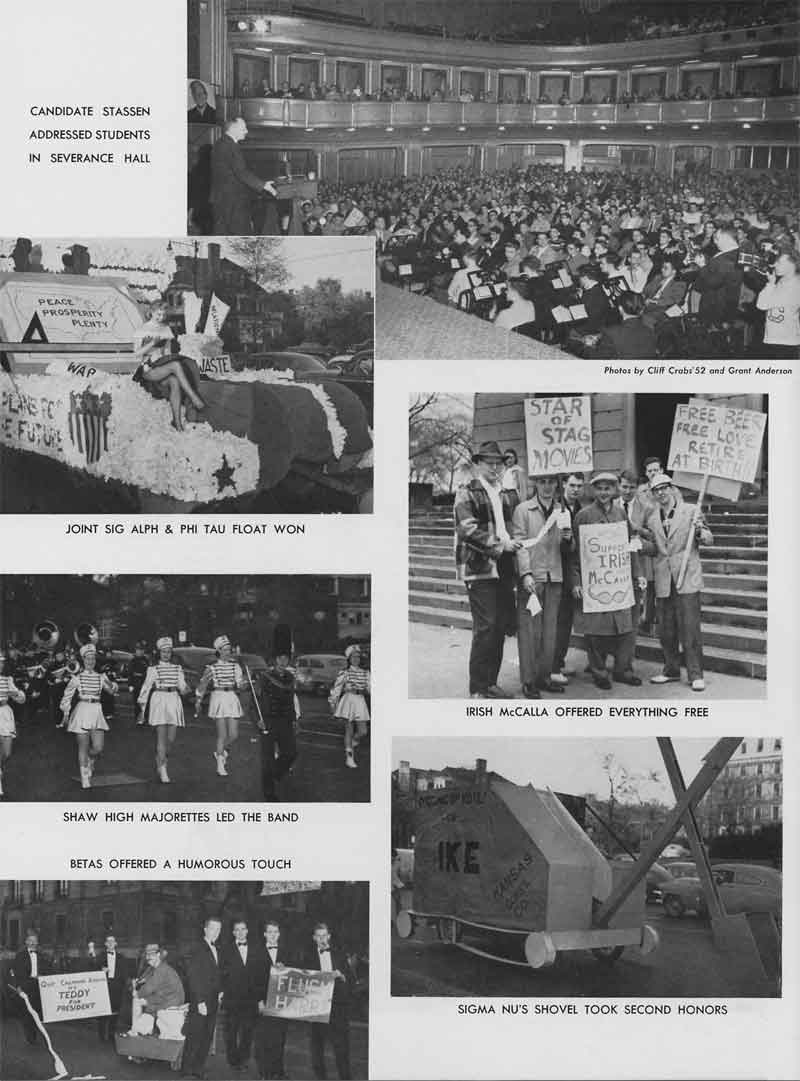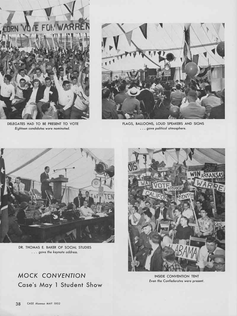 Case Alumnus' May 1952 issue covered the Mock Political Convention - the parade, the speeches, the votes - reporting that 800 students participated.
