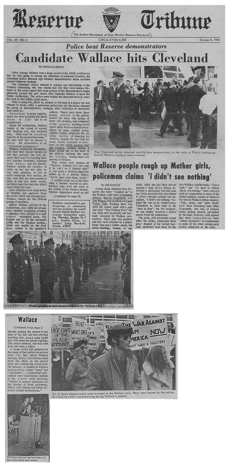 - Reserve Tribune article about George Wallace visiting Cleveland