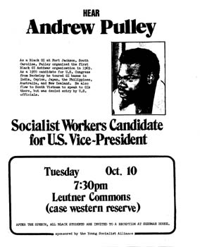 Socialist Workers vice presidential candidate Andrew Pulley spoke on campus.