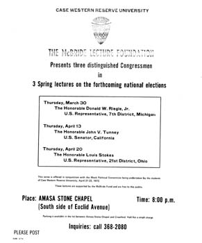 The Twenty-sixth Amendment to the U.S. Constitution enfranchised 18-to-20 year-olds. CWRU Students for McGovern sought donations for window cards, to be put in the windows of student dormitory rooms. Former faculty member (School of Medicine 1955-1965) Dr. Benjamin Spock, was the presidential candidate of the People’s Party.