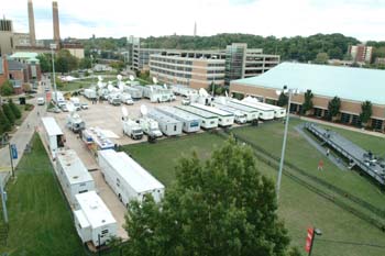Van Horn Field was used as a staging area for media trucks.