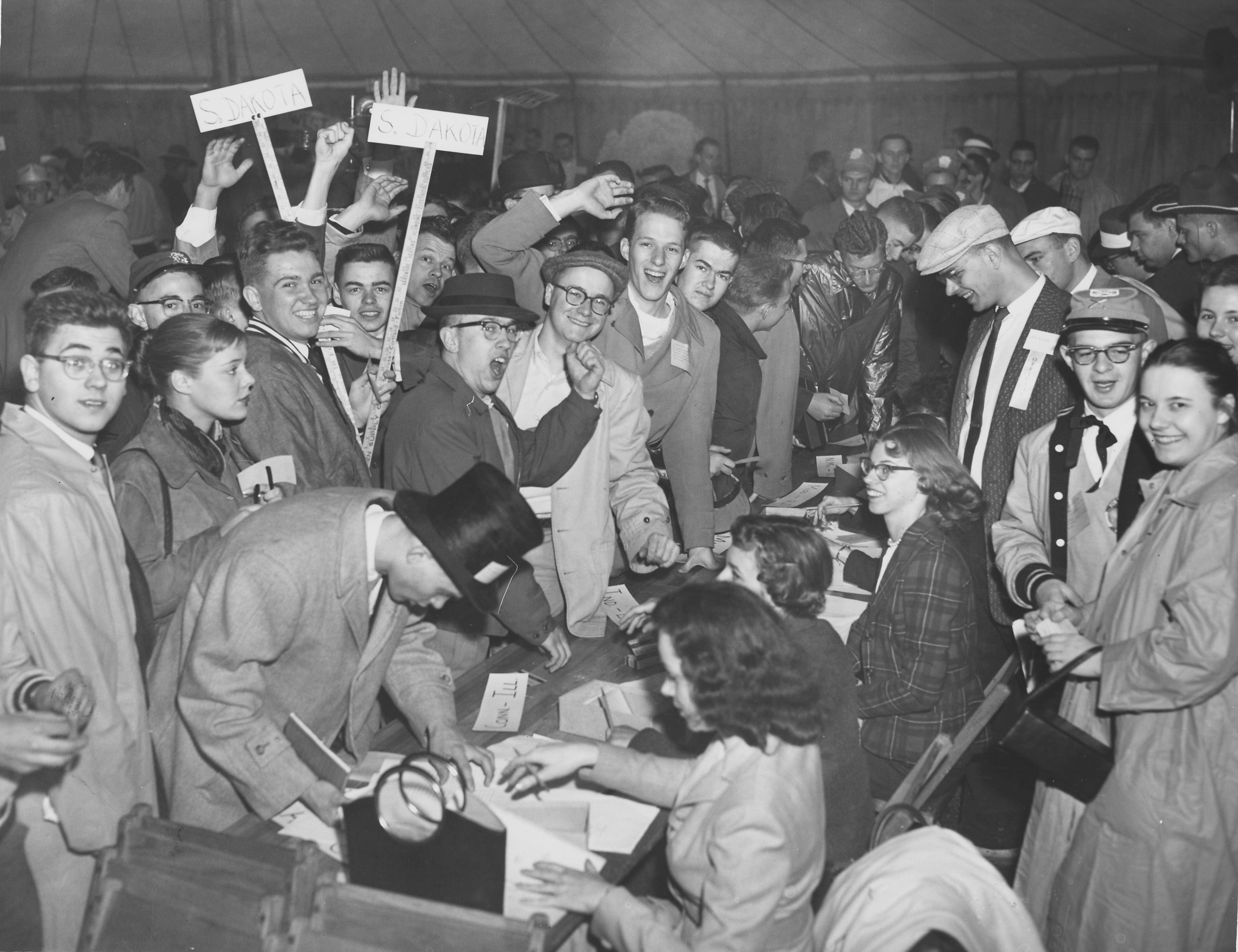 1948On May 11, 1948, Case Institute of Technology held its first mock political convention. Classes were dismissed at 10am to permit students to participate. A large tent was set up on Van Horn Field for the event, while the previous evening convention activities started with a parade down Euclid Avenue.