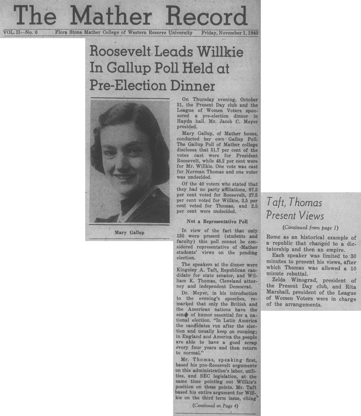 Franklin D. Roosevelt was the first and only President elected to a third term.1940Mary Gallup, of Mather House, conducted her own Gallup poll of Mather College.