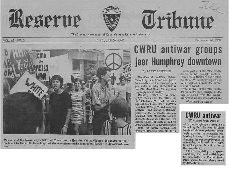 Eugene McCarthy's Children's Crusade was dominated by college students who cut their hair and shaved their beards to campaign in New Hampshire's primary with the slogan, Get Clean for Gene.1968Fred Halstead, Socialist Workers Party candidate for president, was the keynote speaker at the Ohio Young Socialist Conference, held at Hatch Auditorium.