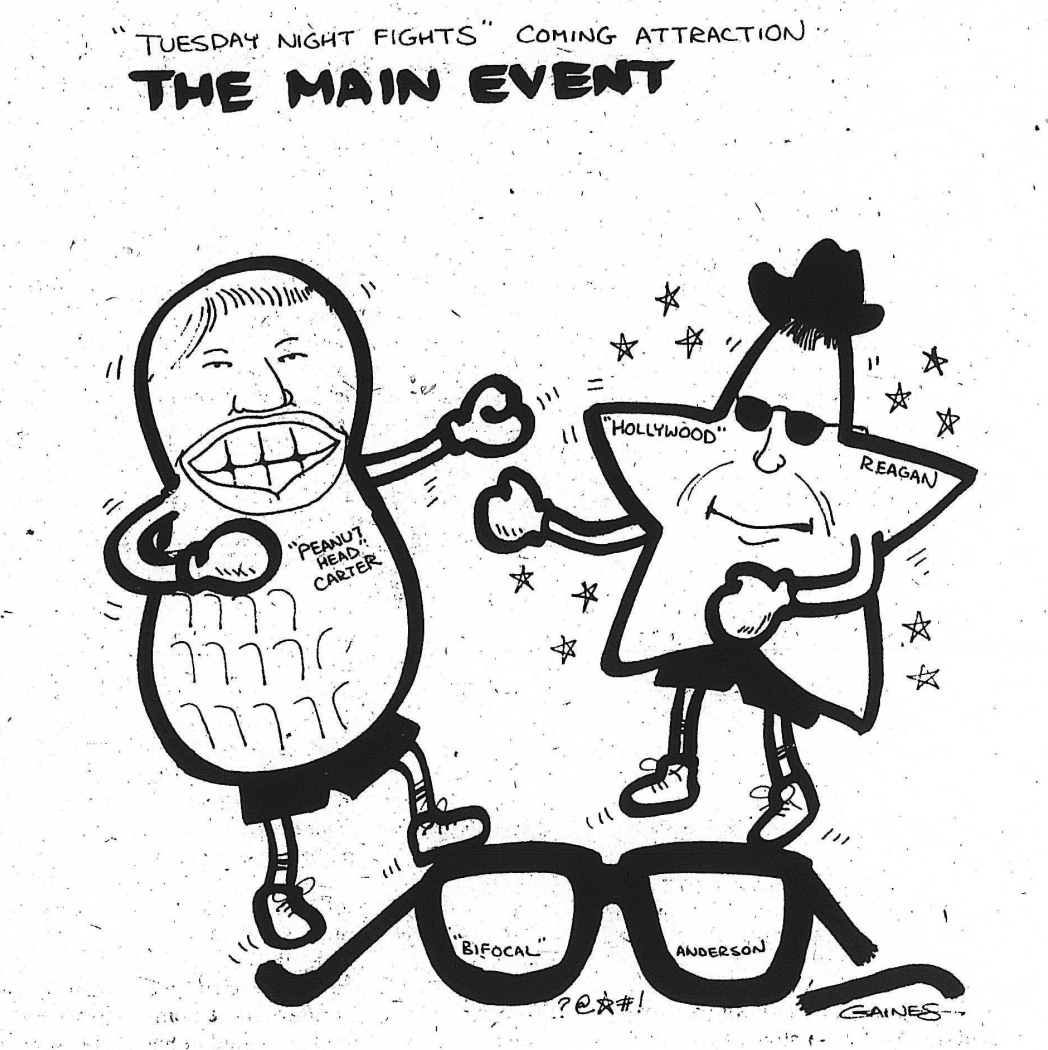 The League of Women Voters again sponsored the two general election presidential debates, one between Reagan and Anderson and one between Reagan and Carter. The Reagan-Carter debate was held in Cleveland.1980On October 28, 1980, CWRU students and noted political scientist Garry Wills congregated at Thwing Center to watch the Ronald Reagan - Jimmy Carter debate.