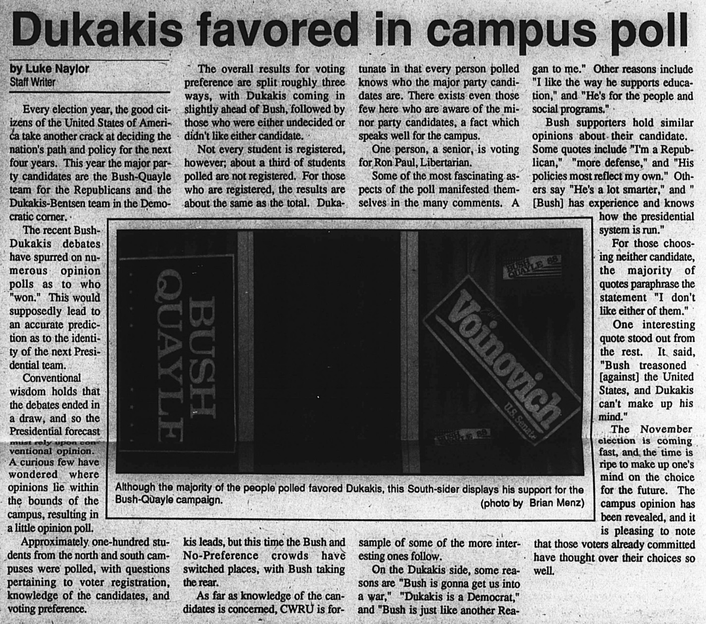 In 1968, 15 states held presidential primaries. By 1988, that number grew to 37.1988Michael Dukakis finished ahead of George Bush in a student poll taken by The Observer. Though an estimated third of respondents were not registered voters, they all knew who the major party candidates were.