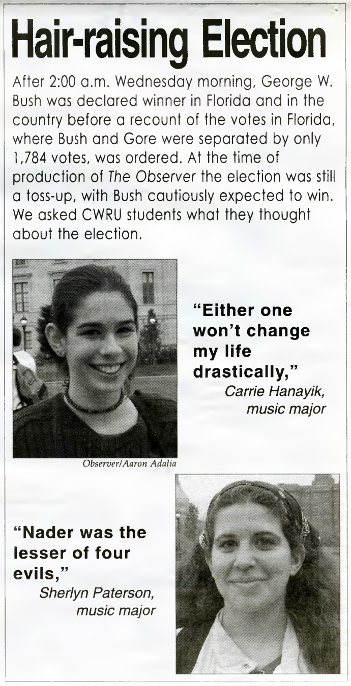 Election results were not decided for more than five weeks after the election, with technology, in the form of punch card ballots, at the heart of the dispute.2000Libertarian presidential candidate Art Olivier visited campus.