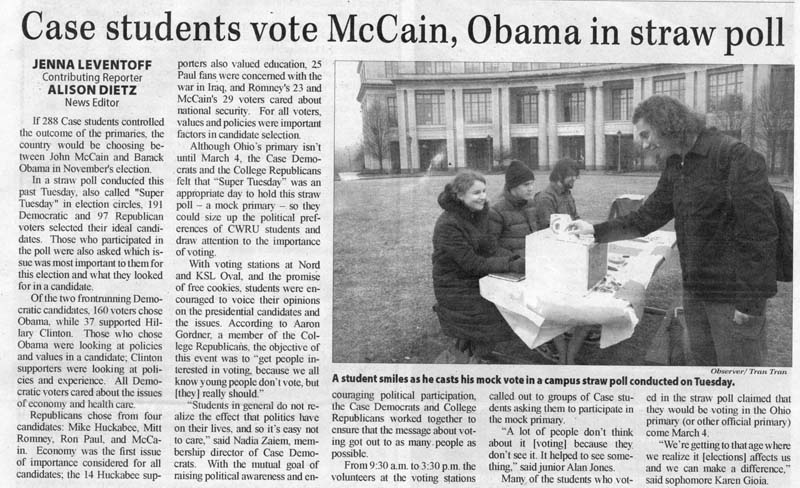 The Republican Party convention was again held in Cleveland.1936WRU was one of six Ohio colleges that took part in a nation-wide collegiate straw vote for president organized by Princeton's Daily Princetonian.