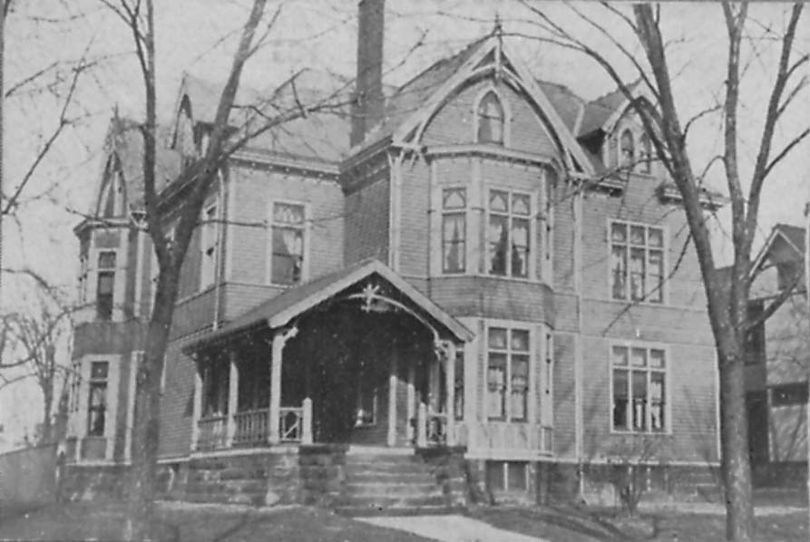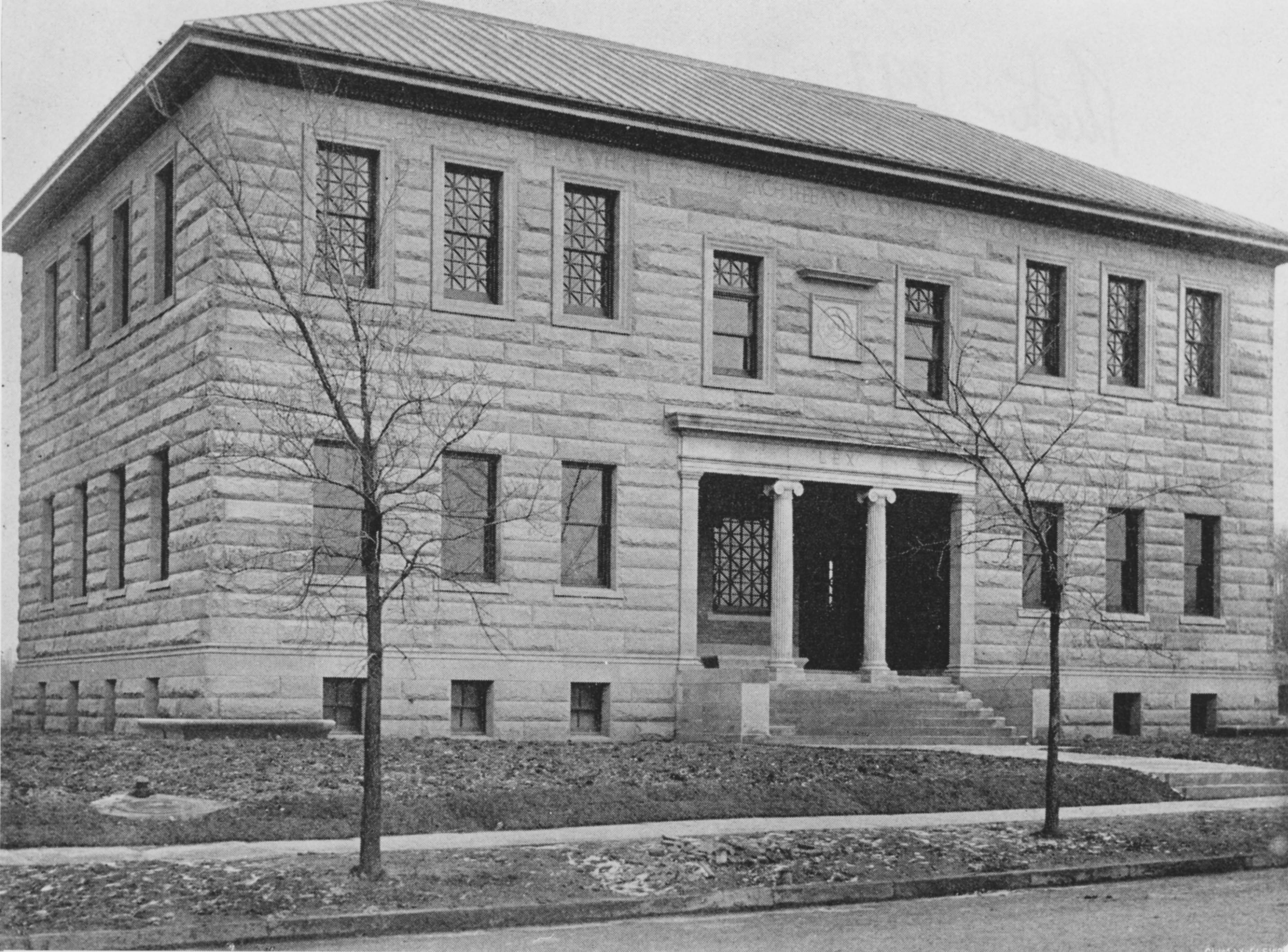 2-story plus basement, Italian Renaissance style, 76x44 feet, of Ohio buff sandstone backed with brick, copper roof