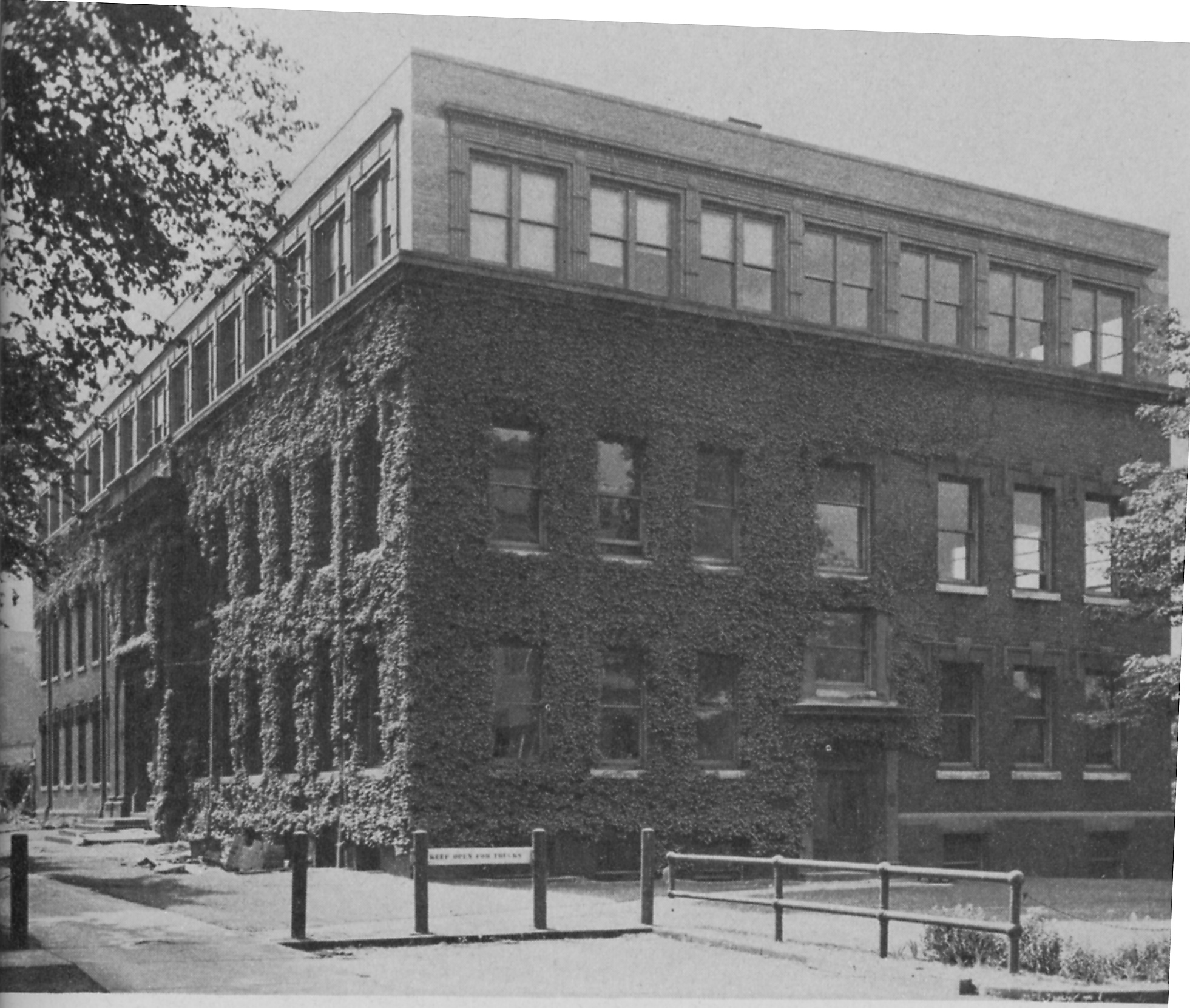 2-story building of Italian Renaissance style, mill construction using brown shale dull glazed brick with tooled stone trimmings, 70x145 feet; containing laboratories, museum, classrooms, offices, shops