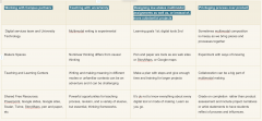 12025-12-31T22:23:56+00:00Kristine Kelly704347a0fb0f4b5c42bc63d040b84f065ec3a67c2516plain2026-01-08T04:55:25+00:00Denna Iammarino7f81a8a993e862c9bf54355dd199b85d1fa4deceSometimes creating multimodal projects and working with multimodal texts can be intimidating. This chart seeks to remedy these apprehensions by outlining the various resources and approaches that can contribute to designing diverse multimodal assignments.